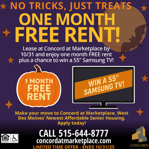 Welcome home to Concord at Marketplace, an exceptional senior living community in West Des Moines, IA for adults 55+. Thoughtfully designed homes combine with outstanding amenities to maintain your active lifestyle.